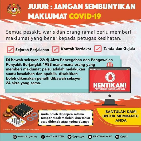 Bagi anda yang pergi membuat saringan kesihatan, sila jujur dan tidak sembunyikan maklumat covid-19 seperti sejarah perjalanan, kontak terdekat atau tanda-tanda dan gejala yang dialami kepada petugas kesihatan. Maklumat ini penting dan perlu dimaklumkan kepada mereka. Stay at homeSumber : […]