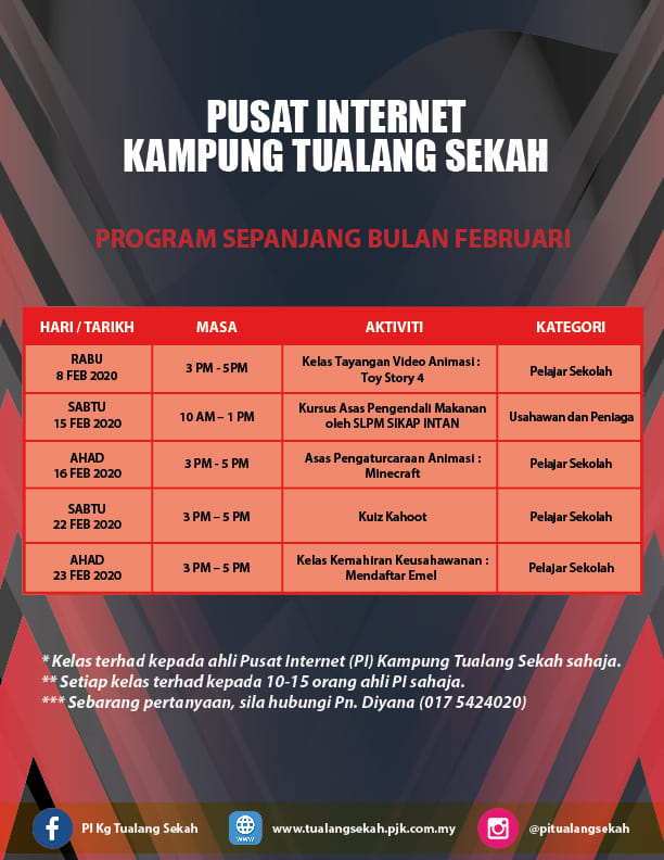 Jadual Aktiviti Bulan Februari 2020