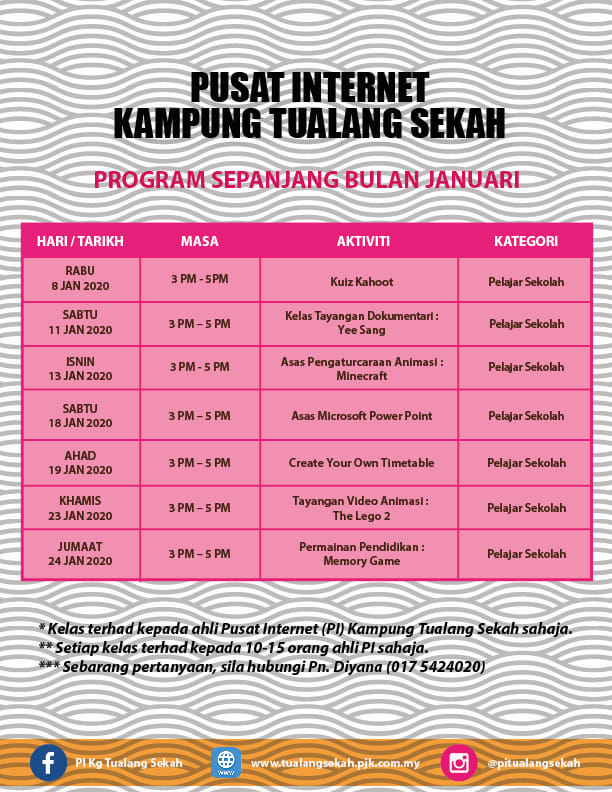 Jadual Aktiviti Bulan Januari 2020