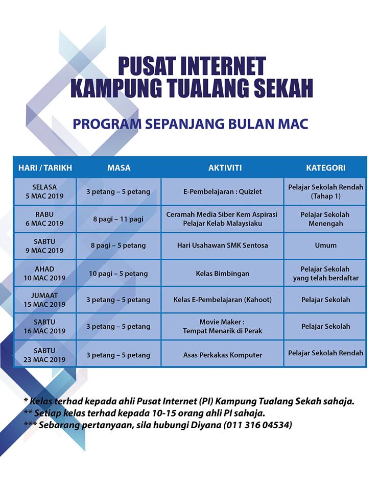 Jadual Aktiviti Bulan Mac 2019